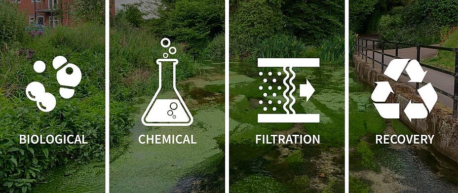 Existen diversos enfoques para la eliminación del fósforo en las aguas residuales. Los métodos más habituales son el tratamiento biológico, el químico y la filtración. En instalaciones con grandes caudales, la recuperación y la valorización de este nutriente puede representar una alternativa económicamente viable.